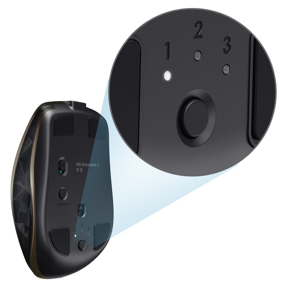 The sculpted shape supports your hand and feels comfortable hour after hour. Use it with up to three computers and switch between them with the touch of a button. Whether you’re on Windows or Mac, MX Anywhere 2 gives you the control to make things happen anywhere.